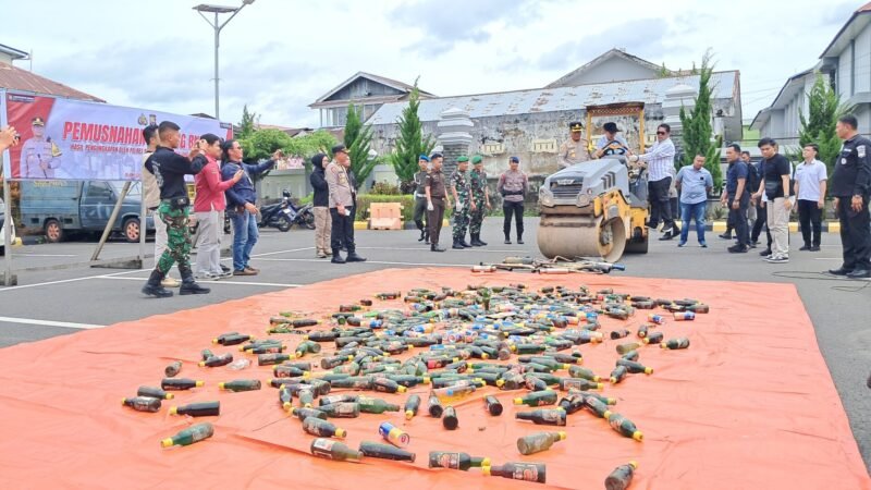 “Barang bukti yang dimusnahkan hari ini berasal dari perkara minuman keras, knalpot tidak sesuai standar, serta obat-obatan terlarang yang perkaranya telah diputus oleh pengadilan,” ujar AKBP Florentus.